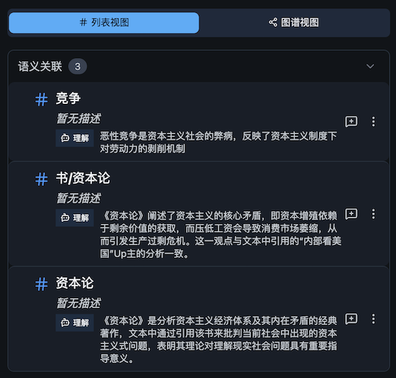 In addition to marking tags in card notes, you can also write your own thinking summary on the supertag detail page.