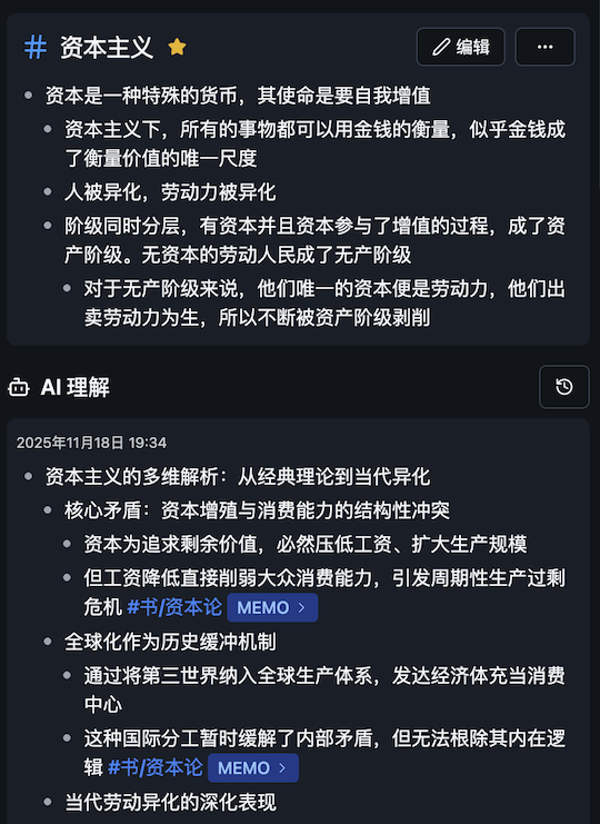 - 大纲式记录:在卡片的内部,我希望你能把单个原子性的信息整合起来,成为一个大纲。